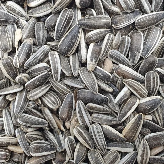 Die gestreiften Sonnenblumenkerne sind gereinigt und können ohne weitere Behandlung ins Futter gemischt werden.
